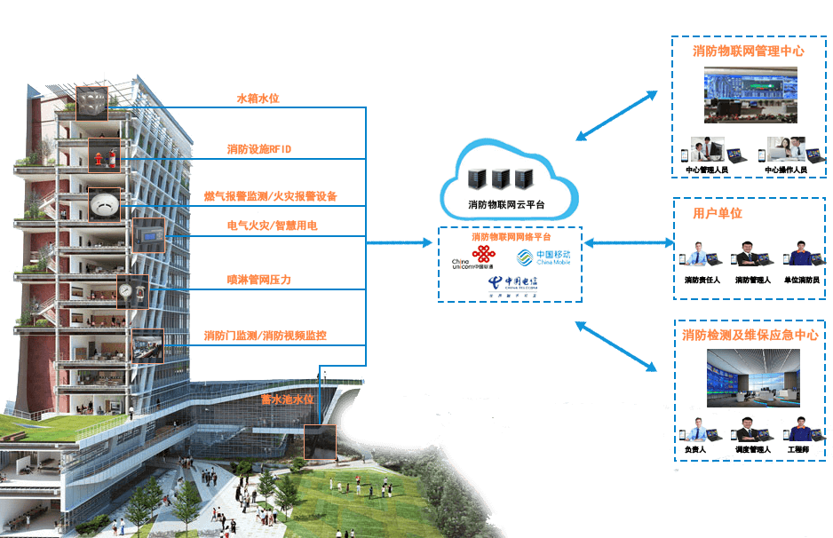 智慧消防无线监测系统是针对现场的实际ayx爱游戏官方app平台入口而设置的系统,便于施工和信息采集。运用移动、电信、联通三大运营商的物联卡传输体系,保持信号传输稳定和传输距离不受限。
