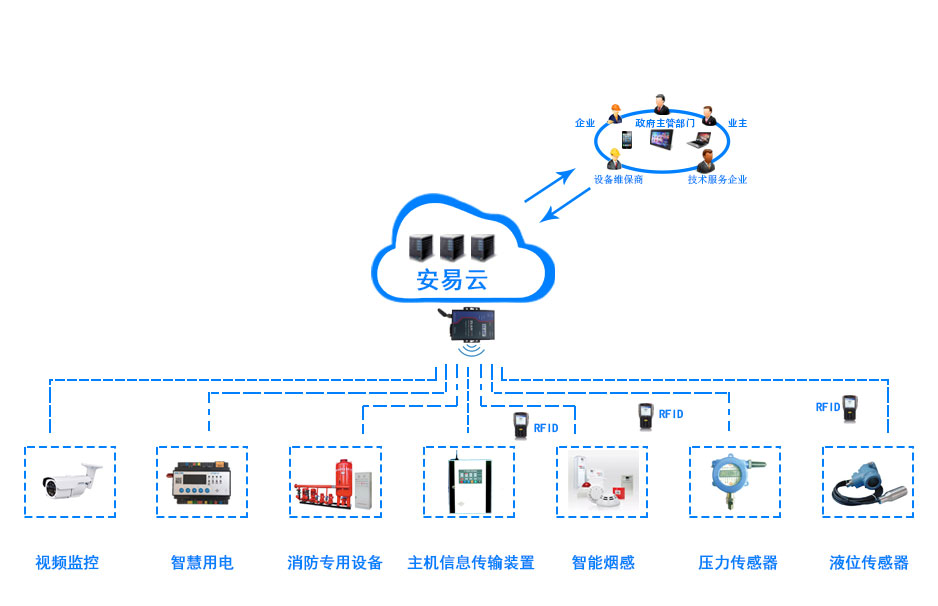 智慧消防安全管理云平台技术可实现对社会单位消防设备、设施日常运行状况全面、动态的监督和管理。城市物联网消防远程监控系统的集中监测实现对若干建筑物的火警进行集中的处理。实现对风险隐患的统一调度、统一应急处理,降低人员成本,提高消防管理水平。
